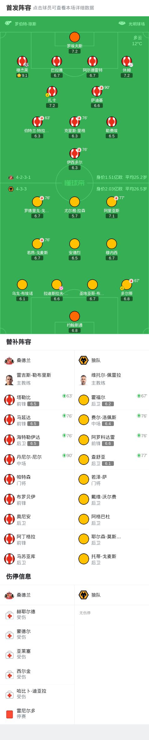 第16分钟,穆杰莱禁区插上抽射破门,桑德兰1-0狼队